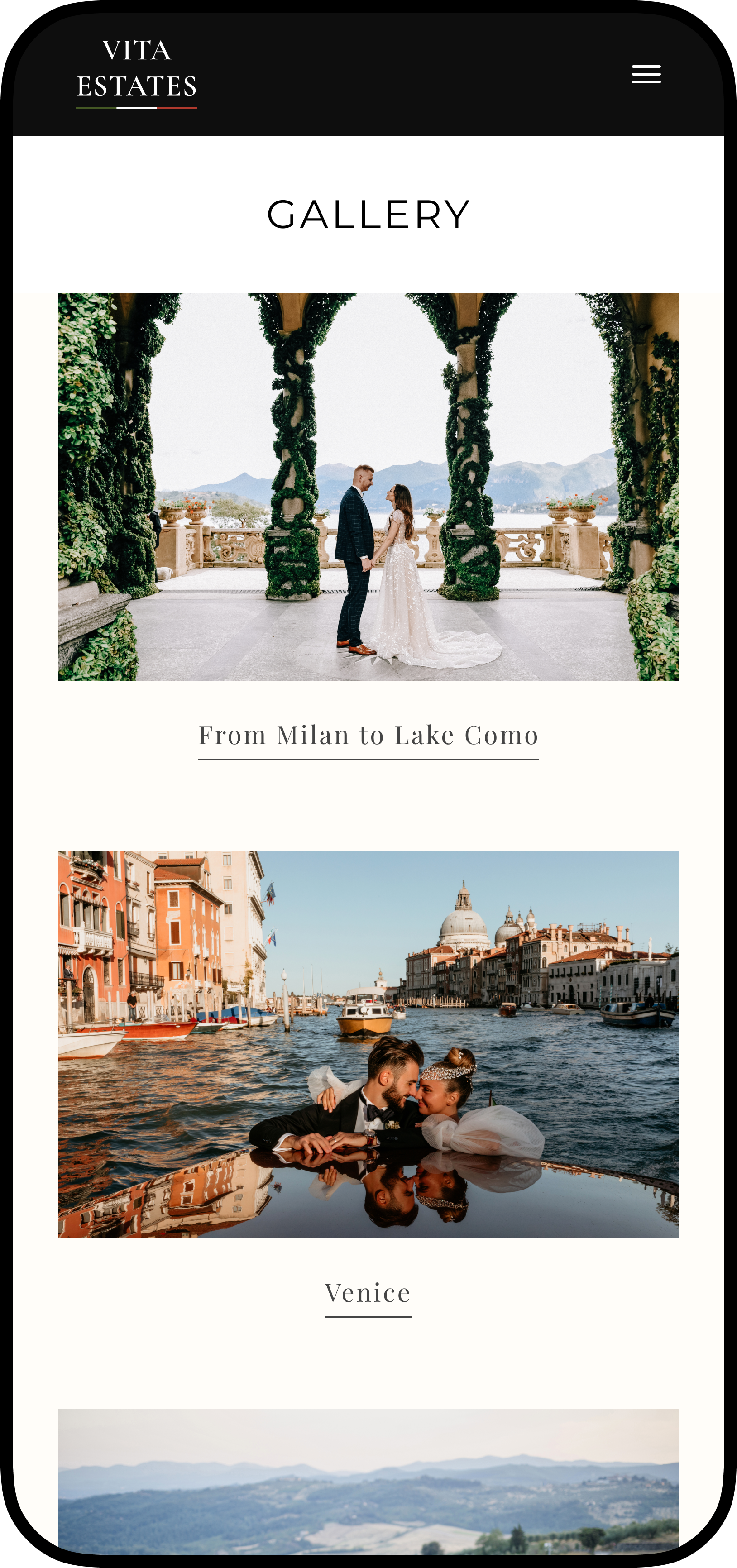 Iteration 1 - Hero image, wedding services, and āExplore by Locationā introduced Italian destinations