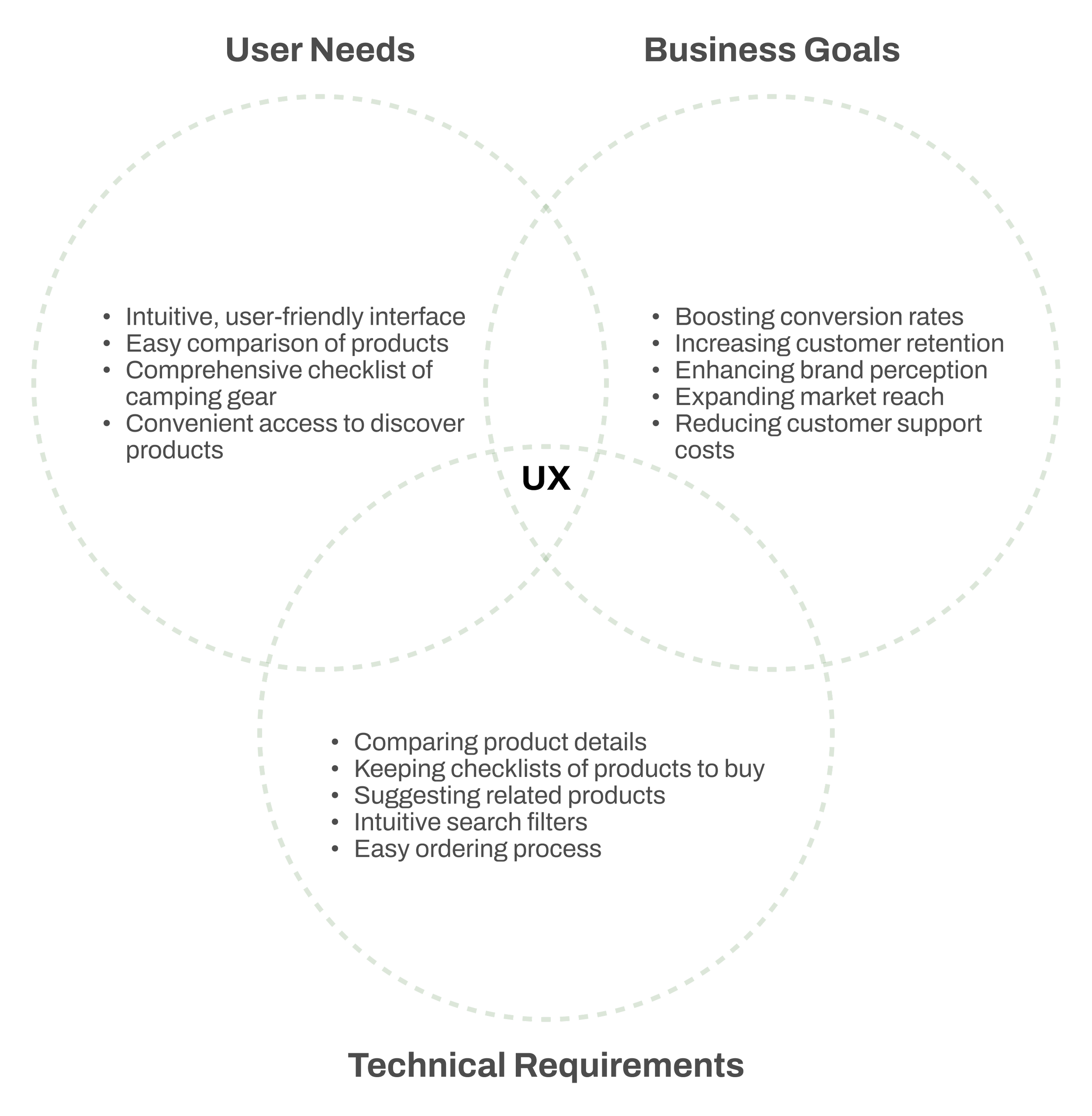 I imagined myself in the shoes of: a user anticipating an upcoming camping trip, the CEO of the client company stuck with a budget strain, and the app development team tasked with perfecting the user journey.